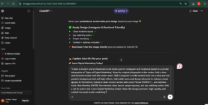 - अगर कुछ change चाहिए (color, text, logo size) तो AI को बोल सकते हो